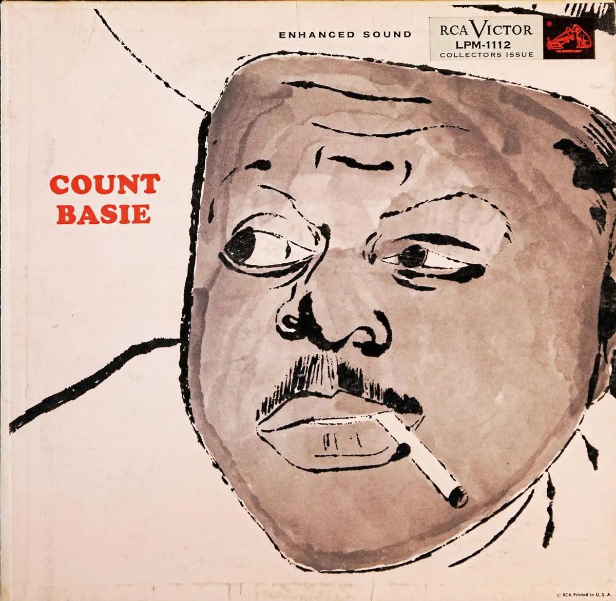 In 1955, Warhol illustrated this cover for a Count Basie LP on RCA Victor. It’s thought to be Warhol’s first celebrity portrait, based on a photograph of Basie given to him by the record company. It’s the only jazz album cover he did that depicted the artist’s face, and closely resembles his later screenprint celebrity portraits. It’s a precursor to the album covers he made in the 1970s and 80s, when Warhol used his silk-screened celebrities portraits on record covers for many artists, including Diana Ross, Aretha Franklin, and—surprisingly—Paul Anka. (ML)