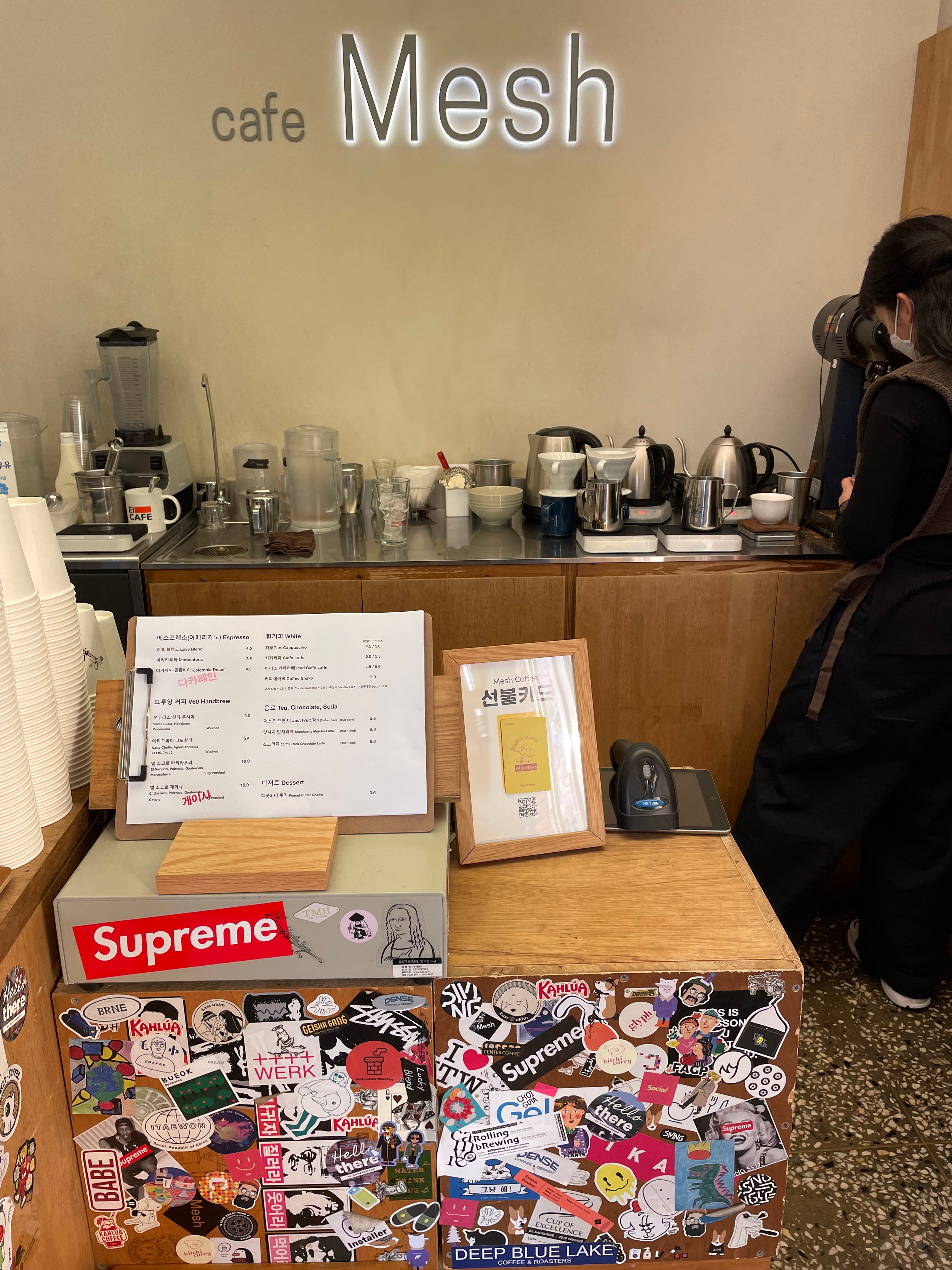 Mesh is another establishment coffee company that’s been operating since 2015. I visited the tiny street-level shop in Seoul Forest several times during my recent visit, and the shop is as serious as it gets, selling auction-lot coffees in 100g bags and hand-brewing V60s. There are only a few seats inside, but you can sit on an available Club-Mate crate on the street. Like many cafés in Seoul, the menu is broken down into espresso (blends and single-origins), hand-brew, and “white”—local parlance for the milk-based espresso drinks we all know and love. I picked up several of the cute hand-stamped bags to bring home for friends. Once back in the United States, I brewed it on Chemex (16:1 if you are asking), and the roasting was extremely light—good but light. Bill Withers, on vinyl, was constantly playing during my three visits too. Nice.