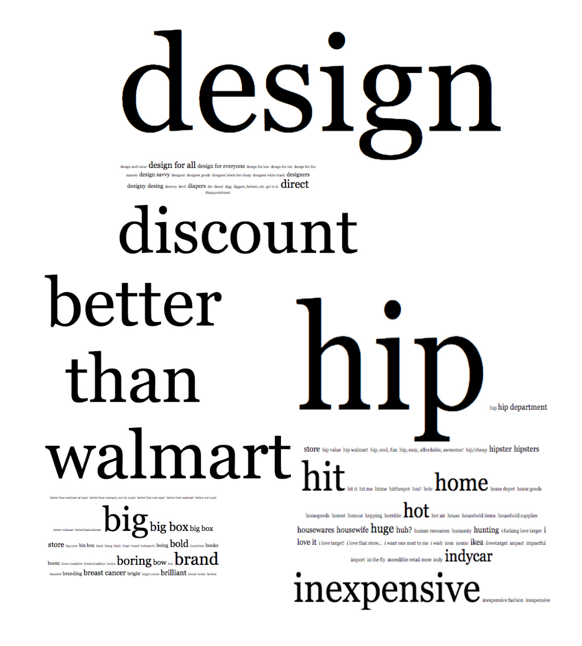 Then it struck me: this is a lot like Brand Tags, a project I built 15 years ago. The tool—which showed people a random brand logo and asked them to type in the first thing that popped into their mind—was inspired by the simple idea that brands live in people’s heads. So when I compiled the responses into a tag cloud, with the most common words showing up in the largest font size, I had a snapshot of what brands really represented. It’s one thing for a Chief Marketing Officer or Creative Director to say the brand stands for refreshment; it’s a whole other thing for it to be the first thought of a consumer.