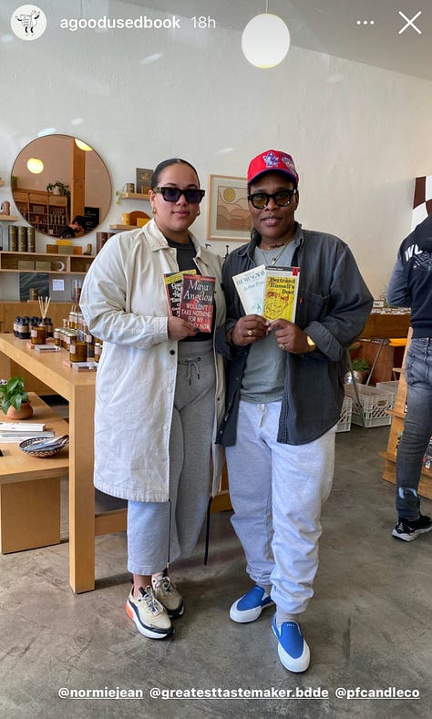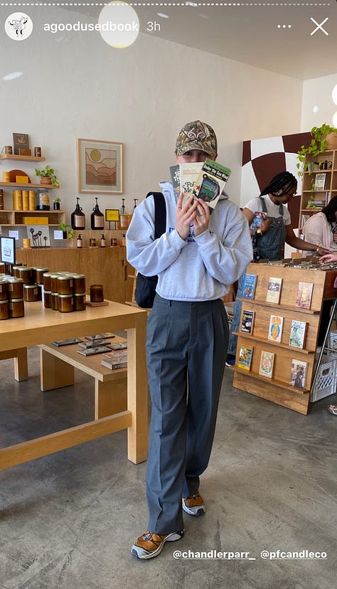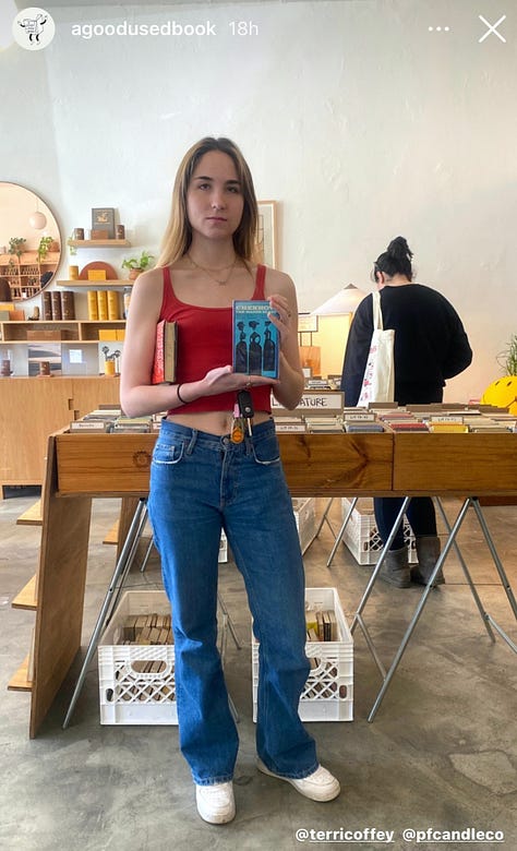 There’s no doubt that literature is cool. Books rule. And the publishing industry? It’s getting more diverse, and cooler—just check out the red carpet from the 2022 National Book Awards. Fits and more fits. Yet the A Good Used Book Instagram Stories is different, and honestly feels a little bit like a 2am after-party. The idea is dead simple: in the style of “what’s in your bag?" at Amoeba or Tower (RIP), customers pose with their purchase—and are tagged for convenient DM drop-ins should you want to…talk Steinbeck with your new friend.