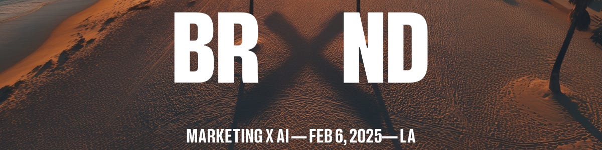 Noah here. I’m putting my BRXND Marketing X AI event in LA on February 6, 2025. Tickets are currently $550 for early-bird buyers. If you’re a marketer, you should come. If you know a marketer on the West Coast, you should send this their way. Get your tickets now.