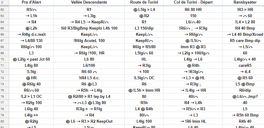 Shockingly detailed manual pacenotes made for Dirt Rally, a fairly realistic rally video game