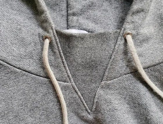 I'm fascinated by features that begin as purely functional elements and evolve into aesthetic choices. Many modern V-notches are purely decorative, mimicking the original design without serving its practical purpose. In my research, I discovered that early sweatshirts had V-notches on both front and back, allowing football players to put them on while wearing helmets, with the added stretch providing both flexibility and durability. For the record, a genuine V-notch involves cutting out the fabric and sewing different material, often ribbed, into the gap. Even more details, for those still curious, are available here. (CJN)