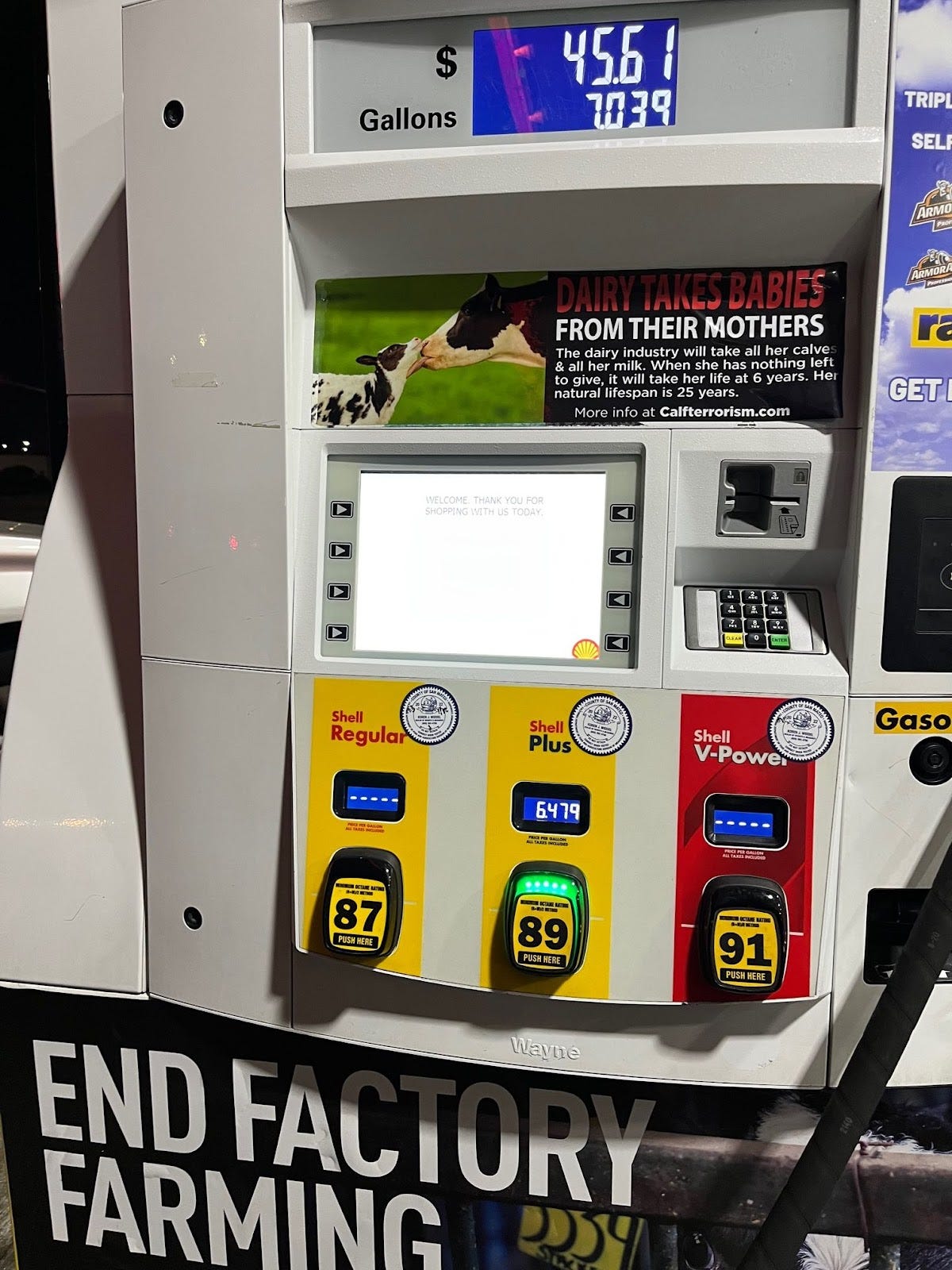 MG: Your emotional response really comes through in the rebrand. I could tell right away this wasn’t some greenwashing. It’s really in-your-face. I mean, there's signs on the pumps with cows saying, “Dairy takes babies from their mothers.” What was your thinking in making the message so bold and so prominent throughout the entire gas station, from a customer experience standpoint?