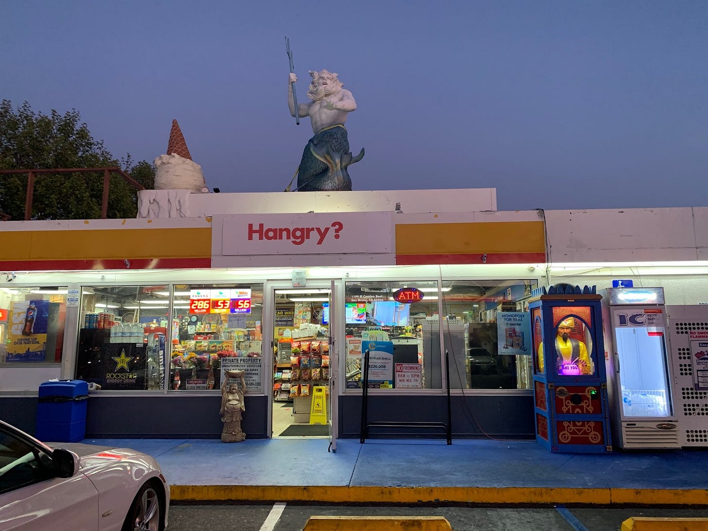 What the hell was going on here? The dino sculpture was fine. The sign was ART. All of a sudden it hit me: for the first time in my life, I had a favorite gas station.