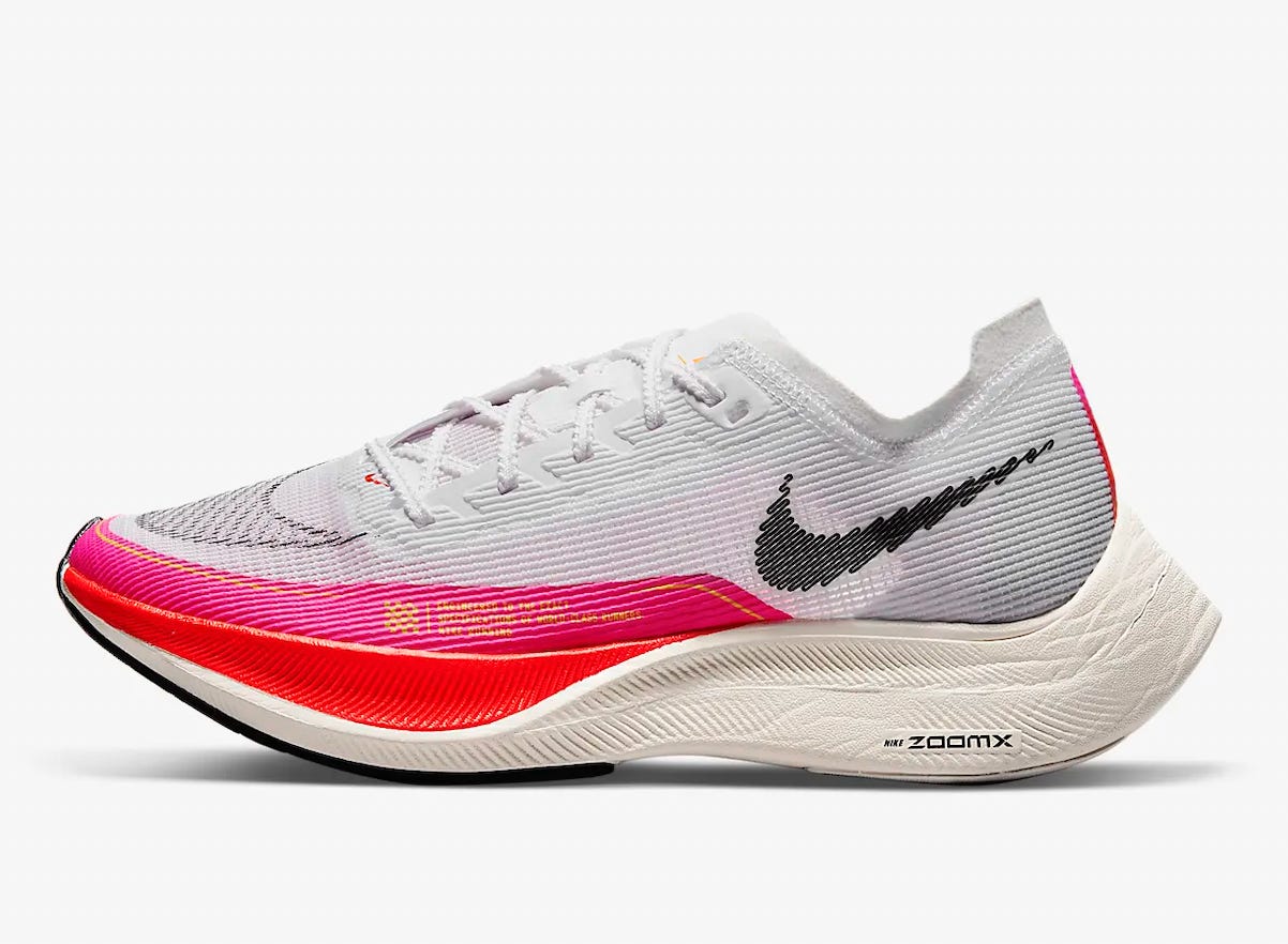Noah here. Back in November of 2019, WITI contributor Reess Kennedy wrote the Vaporfly 4% Edition, noting the sea of pink feet in the 2019 New York City Marathon. Those pink sneakers were Nike Vaporflys, at the time the company’s high-performance distance running shoe. Sporting a carbon-fiber plate and extra special foam, the shoes promised (and delivered) a 4% performance increase.