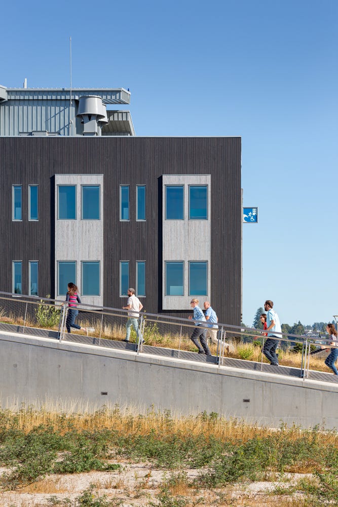 Designed by Yost Grube Hall Architecture, and completed in 2020, the building has multiple paths to the top, including an exterior ramp and multiple stair and elevator routes accessible 24/7/365. The elevator has a backup generator and can move up to 200 mobility-challenged people in the twenty-minute window between a quake alarm and the arrival of a tsunami wave.