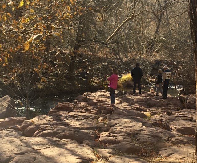 Oak Creek from L’Auberge in December 2017, and that man on the far right in the hat is my dad