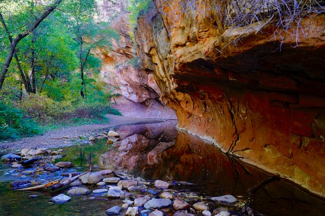 And before it was an overrun destination, we would hike West Fork and eat sour blackberries off the bushes, then scramble up the creek bank to where we’d abandoned the car on the shoulder of Highway 89A as if we were never coming back.