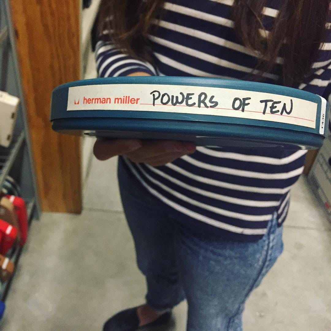 Thanks to Amy, I was able to visit the Herman Miller archive in Zeeland, Michigan a few summers back. Cool Hunting sums it up best: “There we found many expected things like correspondence, old catalogs, sketches, swatches and rare pieces of furniture, along with unexpected treasures like shop floor-made templates for cutting wood pieces of modernist masterpieces and the negatives for the Eames‘ seminal 1977 film ‘Powers of Ten and the Relative Size of the Universe.’ The archive of course plays a significant role in discovering, managing, and sharing the company’s past, but it’s also used as a navigational tool in charting the company’s future.”