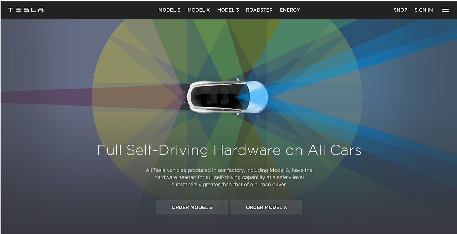 Tesla's Autopilot is not a self-driving or autonomous vehicle system, but drivers of those vehicles could be forgiven for believing that's what they're getting. Note the language used to describe the equipment on Tesla’s cars (see image below, taken from the company’s website earlier in the year). Thankfully, the driver in this 2018 crash was not fatally injured. Afterward, he told the NTSB “that the name 'Autopilot' did not accurately describe the technology because the car did not fully drive itself.”