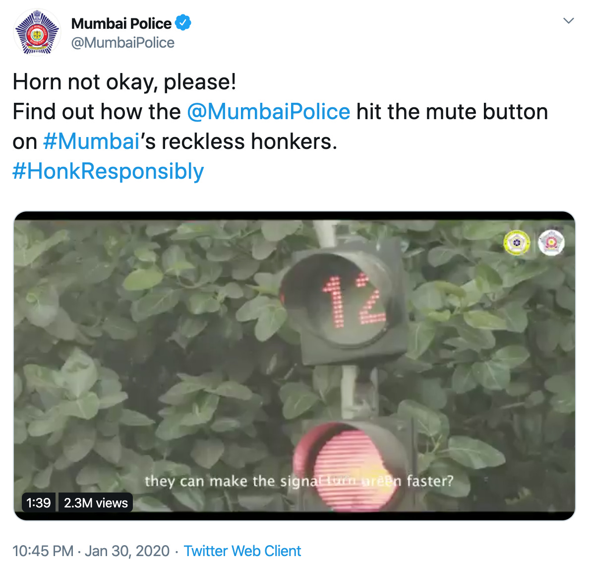 In what is most likely mostly a PR ploy, the Mumbai police recently tried to solve the problem by installing noise meters on traffic lights: if the sound goes above 85 decibels the red light countdown starts again. It feels like an advertising awards show entry, which it most certainly is.