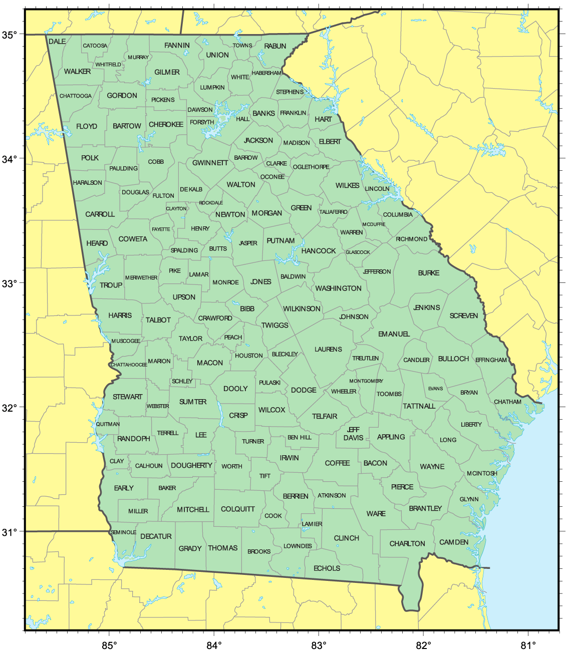 Georgia, where I live, does care about counties. So much so that there are 159 of them. That’s the second-most of any state (Texas has 254, and also about 200,000 more square miles of land area and 16 million more people).
