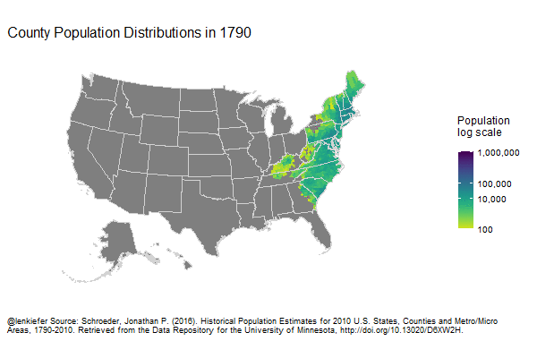 What better use of counties than to show the population migration and growth of the United States over the last 220 years. From Len Kiefer. (RJA)