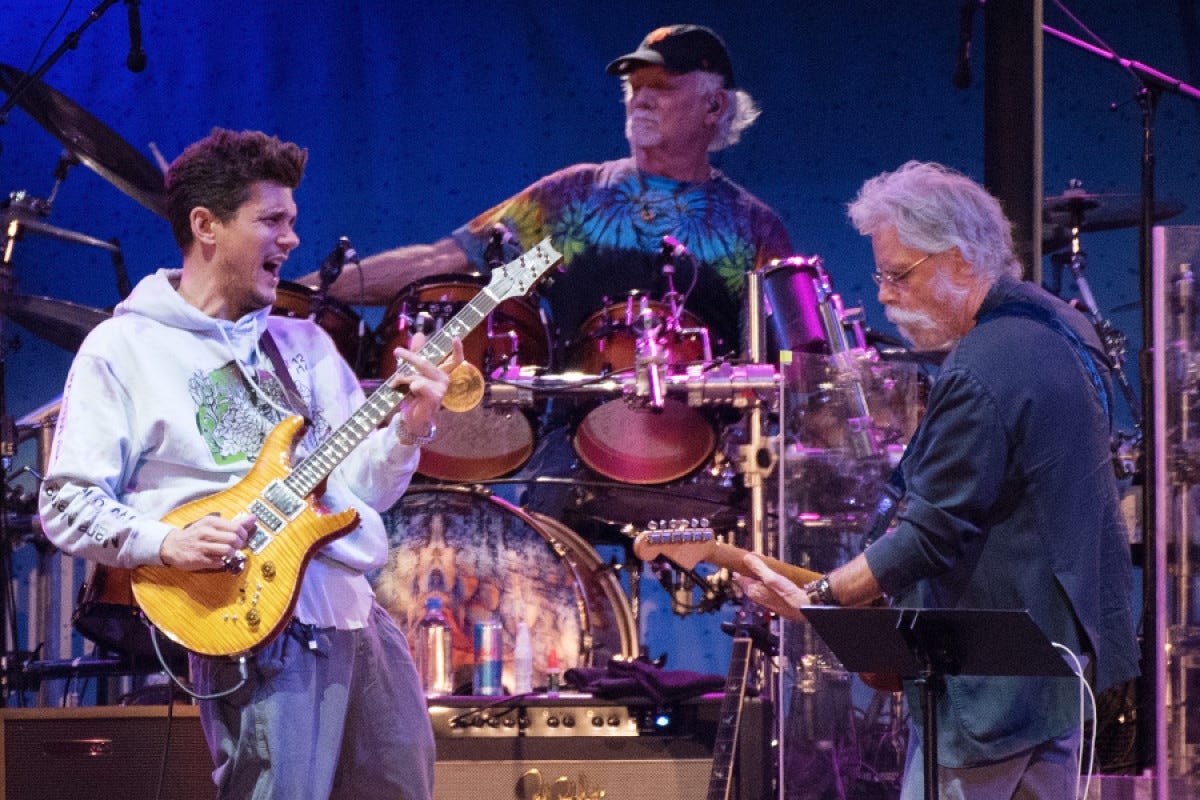 John Mayer, he of the voluminous Instagram comments, has been sharing the stage with a unit comprised of three of the original members of the Grateful Dead (Bob Weir, Bill Kreutzmann and Mickey Hart), as well as a handful of other sidemen like bassist Oteil Burbridge (Allman Bros., Aquarium Rescue Unit) and keyboardist Jeff Chimenti. (Chimenti occupies the proverbial hot seat as keyboardists are to the Grateful Dead as drummers are to Spinal Tap).