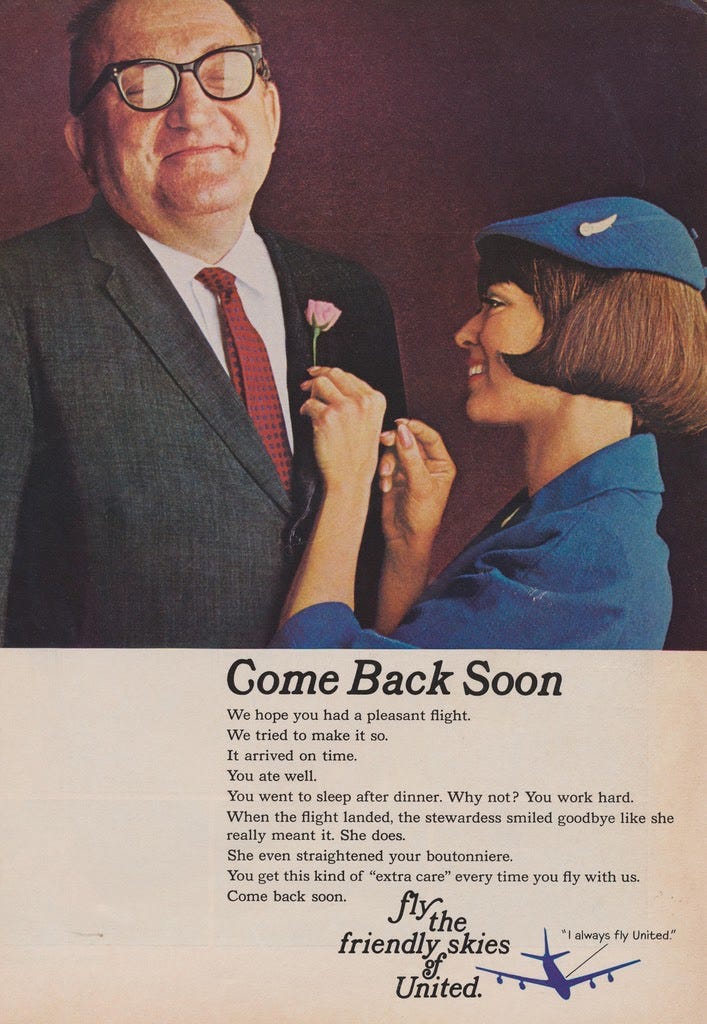 In 1960, United was the General Motors of air travel—“professional, official-looking” and “a little stuffy and cold—coldly efficient, with a production-line attitude.”