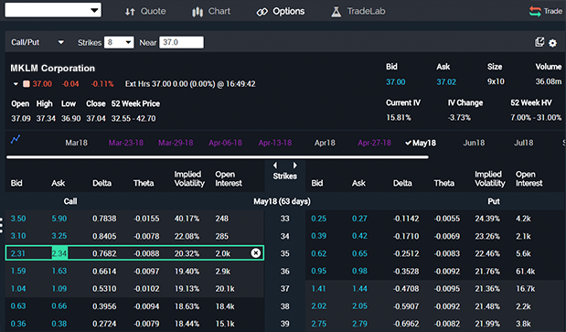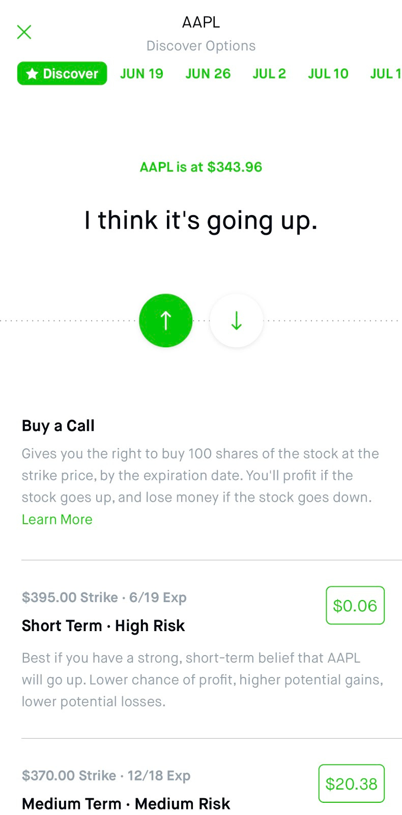 Beyond the absurdity of this particular story, I’ve been fascinated for some time by the design of Robinhood. While most conversations around the app are focused on how they pushed the market to do away with commissions, my own interest has been about how they make trading stocks feel like a game. For example, here’s E*TRADE’s option-trading interface: