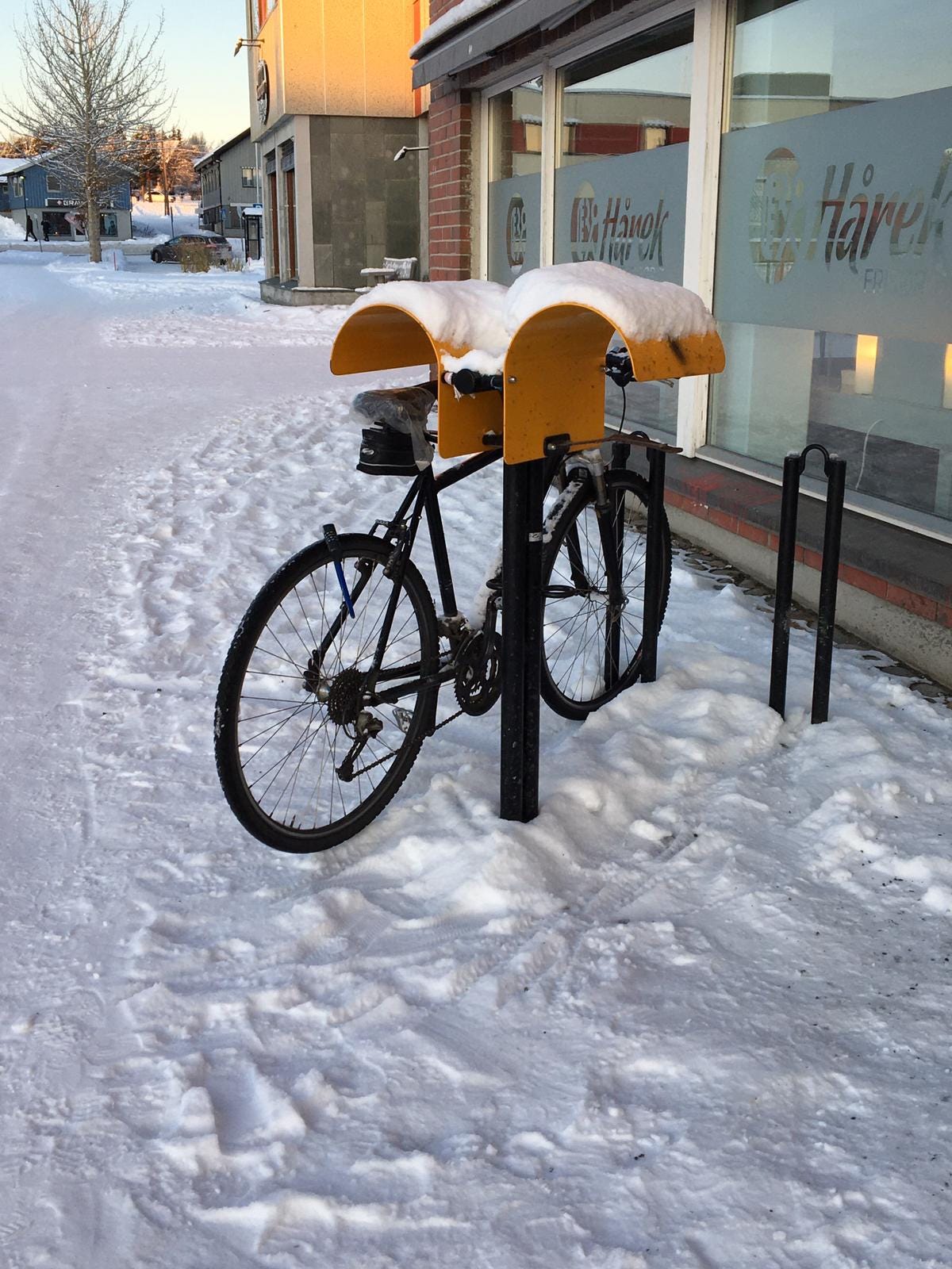 Bicycle seat shelters to keep seats snow free for winter riding in Norway. (NRB)