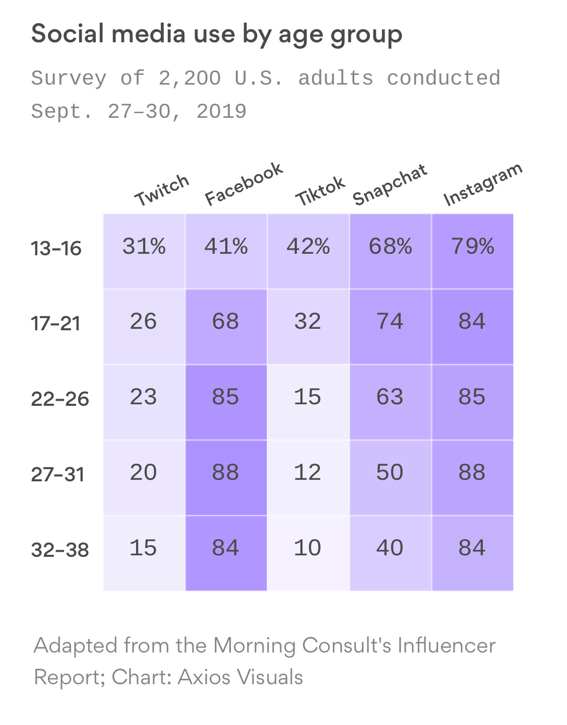 More 13-16 year-olds now use TikTok than Facebook, the coming-of-age moment for any new social platform. Via Axios Media Trends. (NRB)
