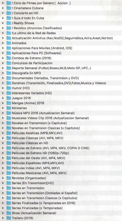 As with most things Cuban, there’s a lot just a little deeper. When I finally got my hands on a copy of the paquete, secreted home on a Lacie Rugged, I took a few months and did a deeper analysis than I’d seen before. You can find that, and some homegrown Cuban commercial content if you’re interested. (And there’s still a huge file on a server somewhere if you want to send a drive and a FedEx number to sample for yourself.)