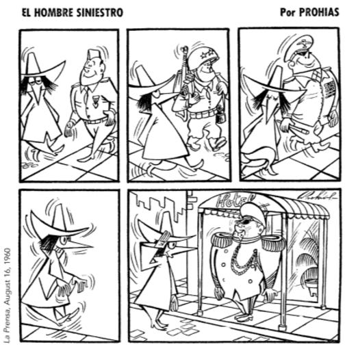 After combing through all this it probably won’t surprise you that Mad’s famous Spy vs. Spy cartoon was the product of a Cuban, Antonio Prohías, whose work had fallen out of favor with the government. Above, you can see his original Spy-esque character, El Hombre Siniestro. When Prohías himself was accused of being a spy and run out of town, the duality was born, and, as the story goes, he walked it into the Mad offices and they hired him then and there.