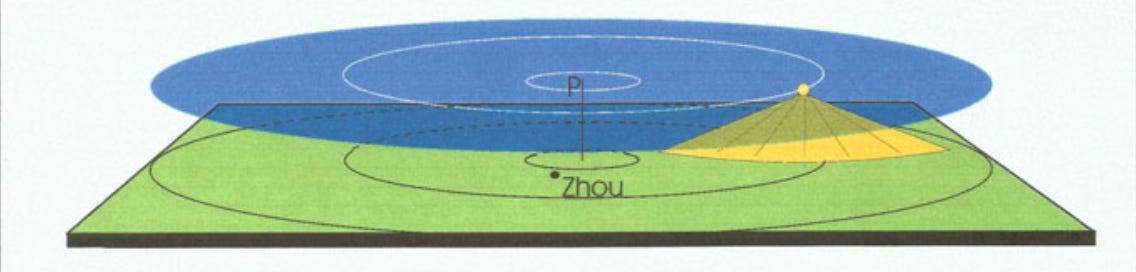 So to sum up: The ancient Chinese derived a geometric truth because they believed they had to keep despots off the throne, and in order to keep despots off the throne they had to maintain heaven’s favor, and in order to maintain heaven’s favor they had to prove the earth was shaped like a square and that heaven was shaped like a circle directly above it. Which is to say that even the most enthusiastically wrongheaded folks can, in the attempt to justify their own moral superiority, make some useful discoveries—it’s just a long way to go for a ham sandwich.