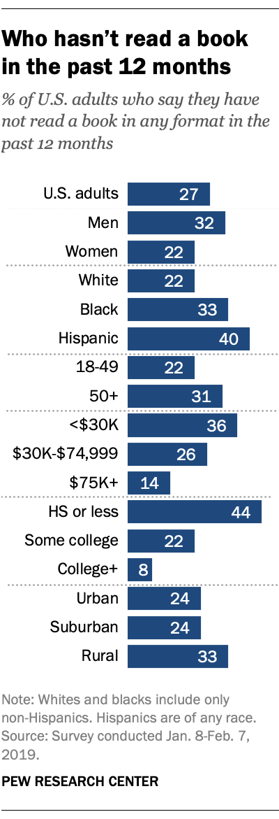 From Pew, the percentage of US adults who haven’t read a book in the last twelve months. (NRB)