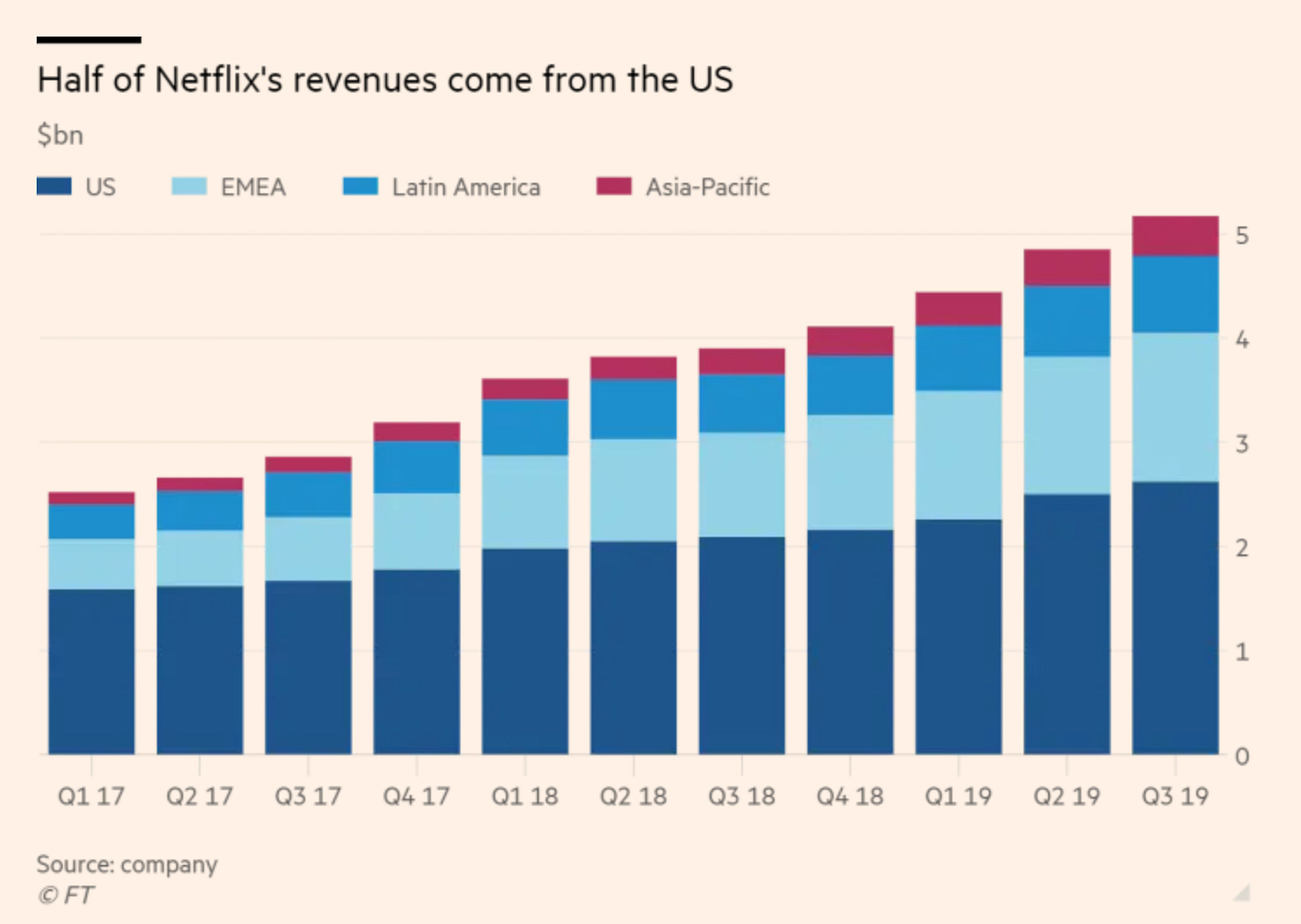 One of the most interesting takeaways for me from the excellent New York Times Magazine profile of Adam Sandler was how huge he is in Latin America and the impact that had on his Netflix deal. From the piece: “‘Blended,’ his third rom-com with Barrymore, did more than 60 percent of its ticket sales internationally, with major returns in Mexico, Brazil and Venezuela. 'Jack and Jill,' a 2011 gender-swap flick with a 3 percent rating on Rotten Tomatoes, earned nearly a tenth of its overall gross in Brazilian theaters.” To that end, I was fascinated to see this Netflix revenue breakdown by region. (NRB)