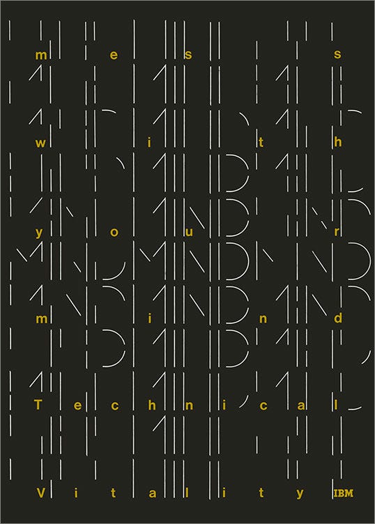 The Type Directors Club (which I’ve never heard of) has an amazing-looking exhibition of IBM posters in NYC until August. Even if you can’t make (I’m going to try), the website featuring the posters is full of inspiring design. (NRB)